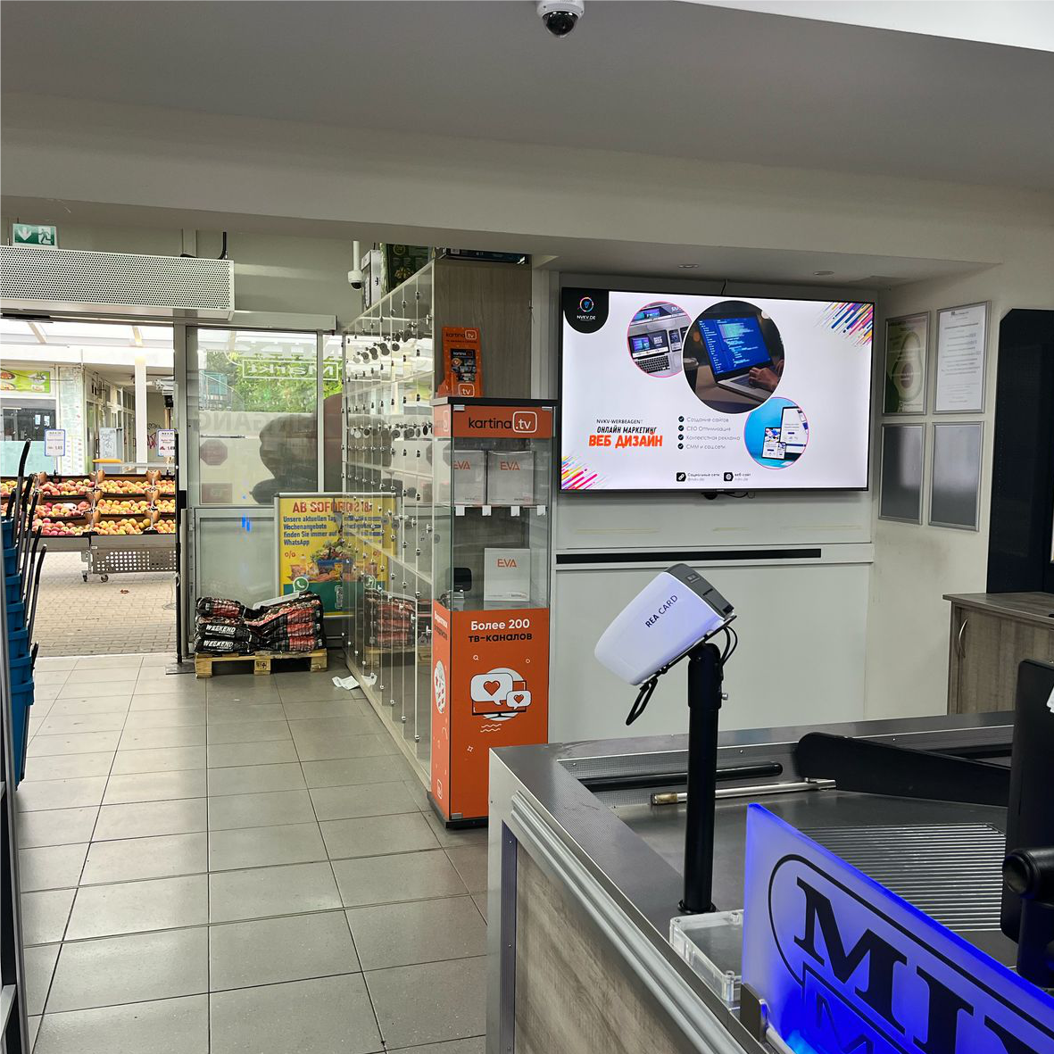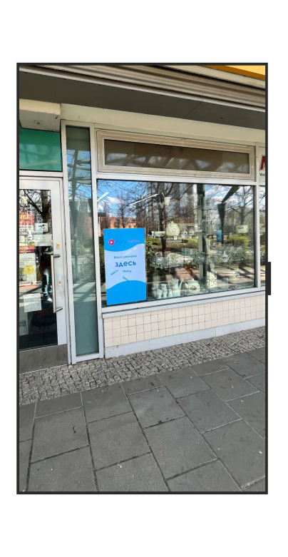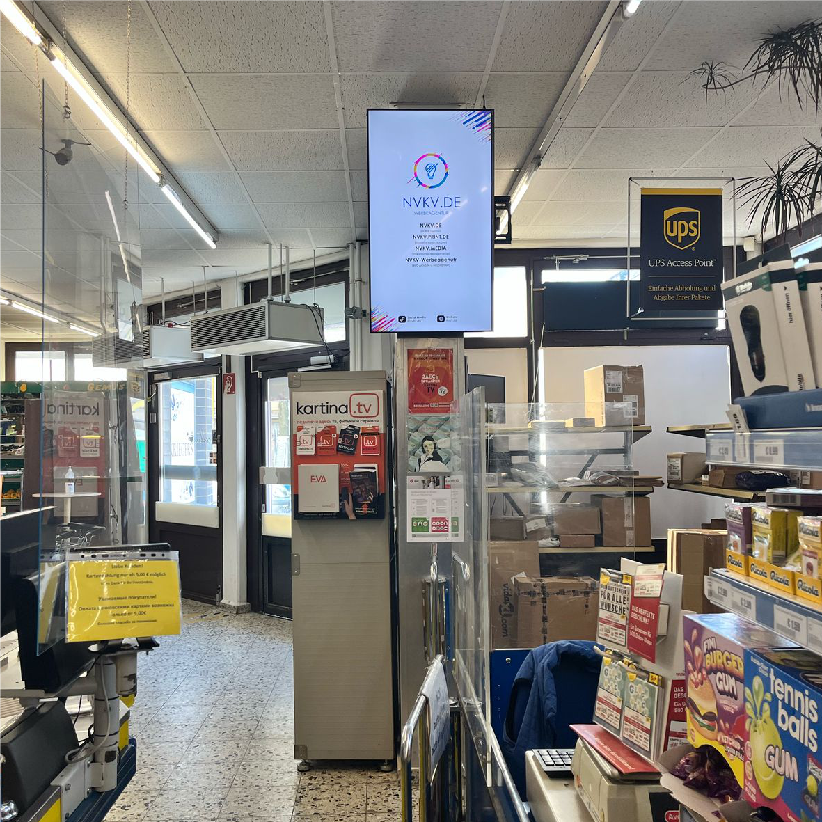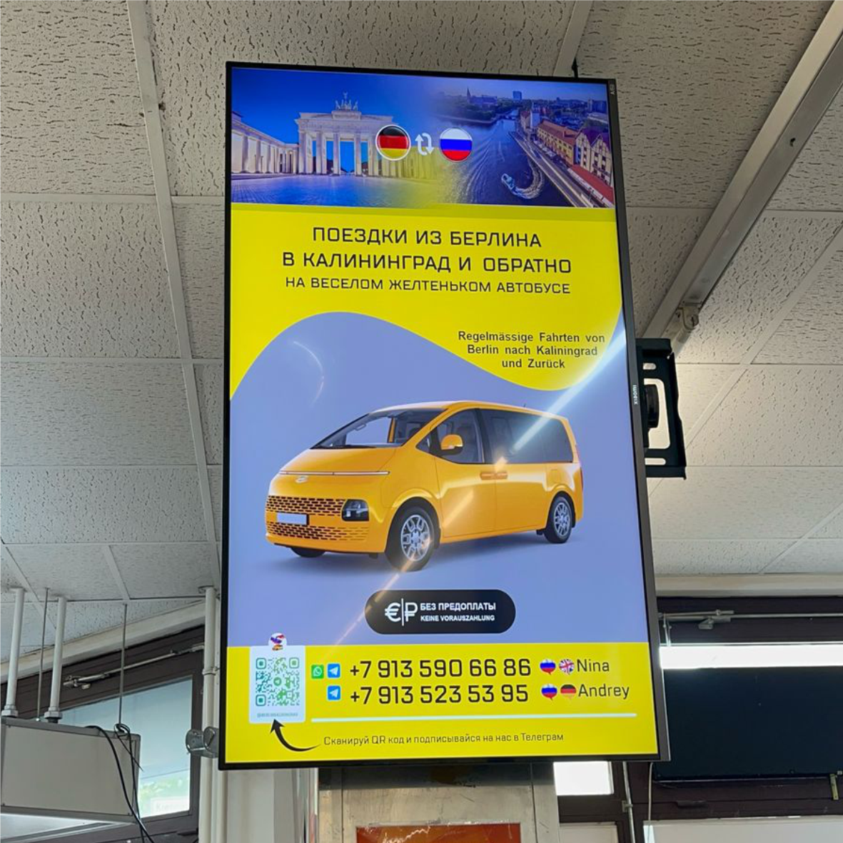 Wir installieren Videomonitore in Supermärkten, Geschäften, Praxen und anderen wichtigen Standorten für die russischsprachige Zielgruppe.